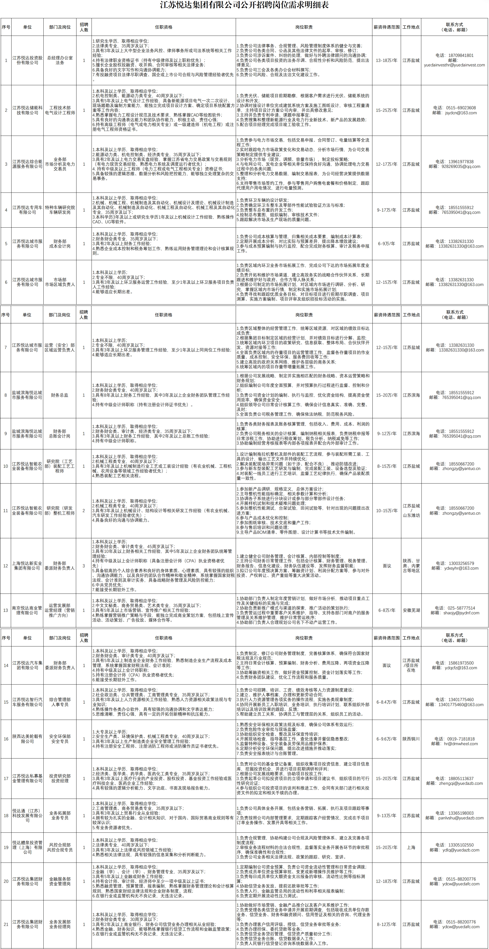 附件1:江苏悦达集团有限公司公开招聘岗位需求明细表