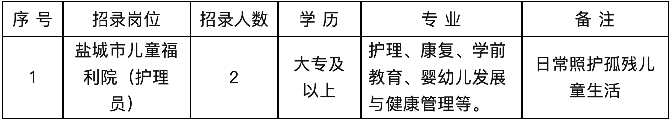 盐城市民政局直属单位公开招录护理员2名